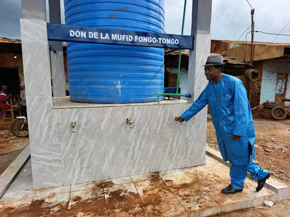 Je voudrais par ce message adresser tous mes remerciements et ma reconnaissance infinie à l’ensemble du Conseil d’administration de la MUFID-FONGO-TONGO, et particulièrement à son PCA, NGUEFACK Maurice (ETRAFOR) pour ce dont de Borne Fontaine, mis gratuitement à la disposition du peuple Fongo-Tongo au marché de Mboua.